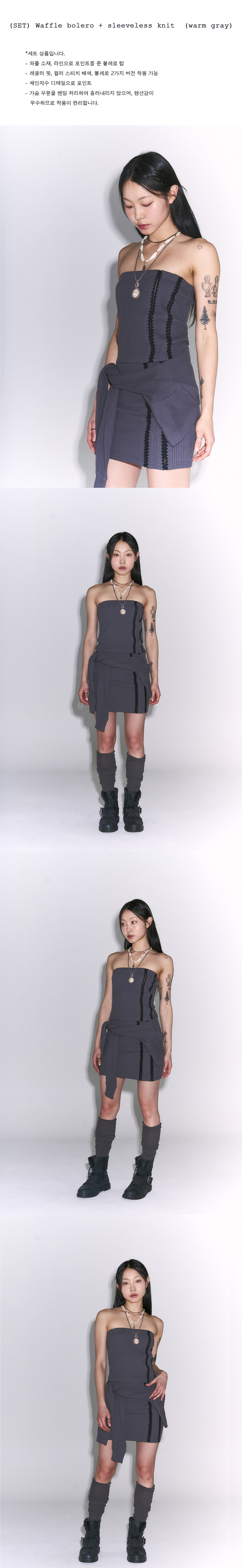 (SET) Waffle bolero + sleeveless knit [warm gray]