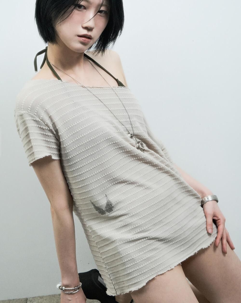 [RESTOCK]Texture loose Short Sleeve Knit Black