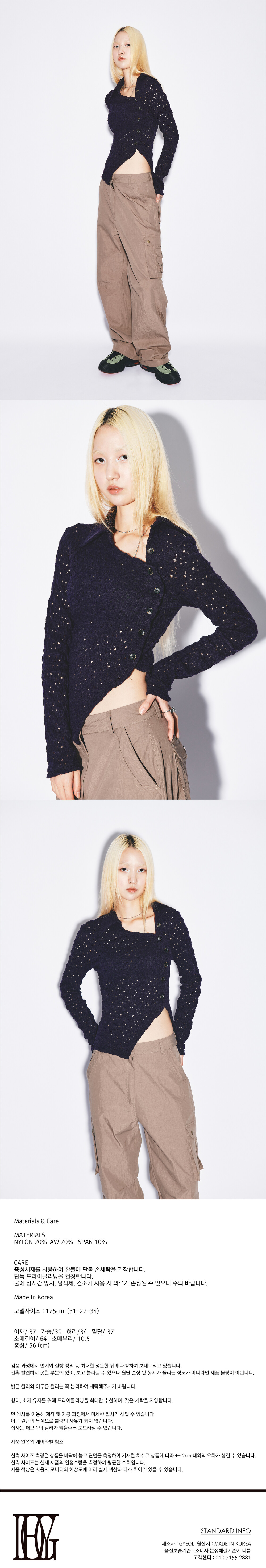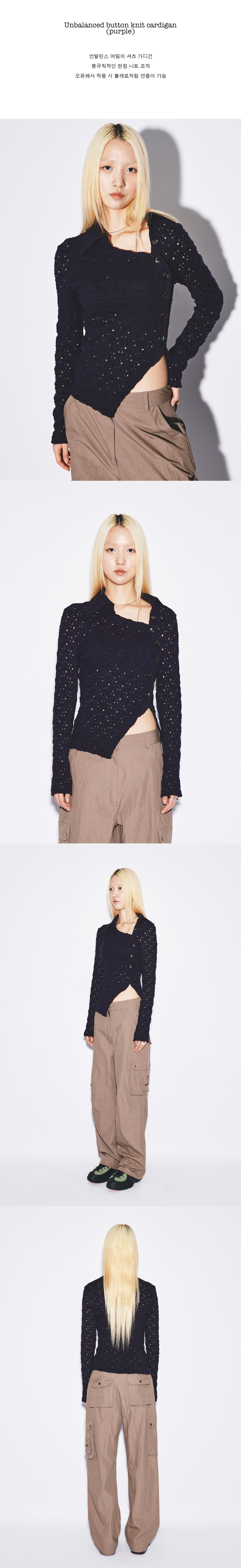 Unbalanced button knit cardigan] [purple]