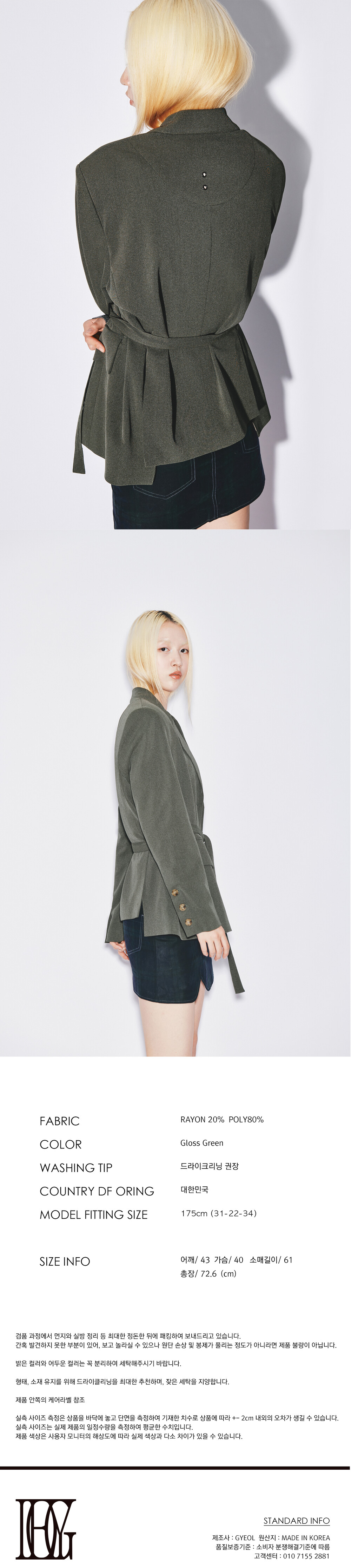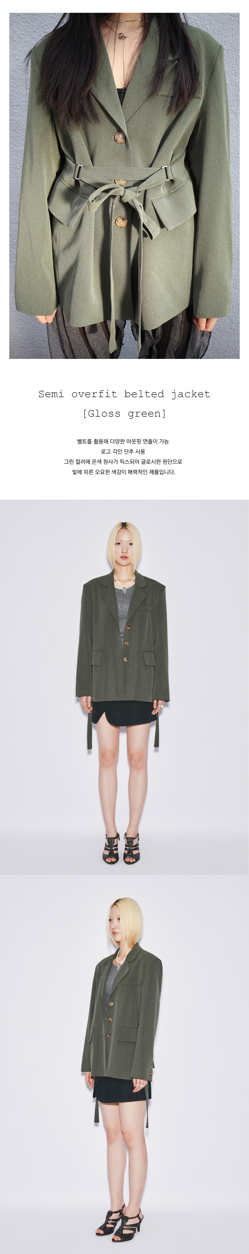 Semi overfit belted jacket [Gloss green]
