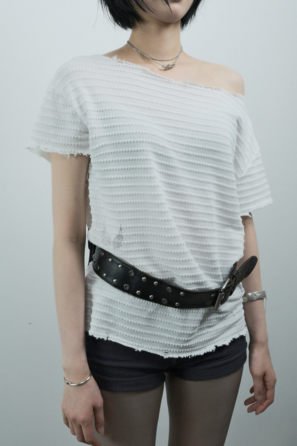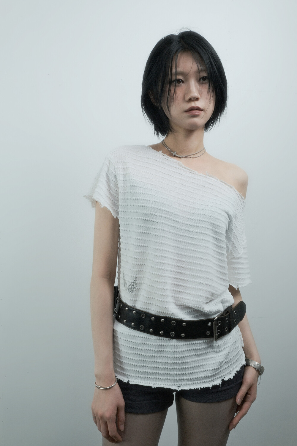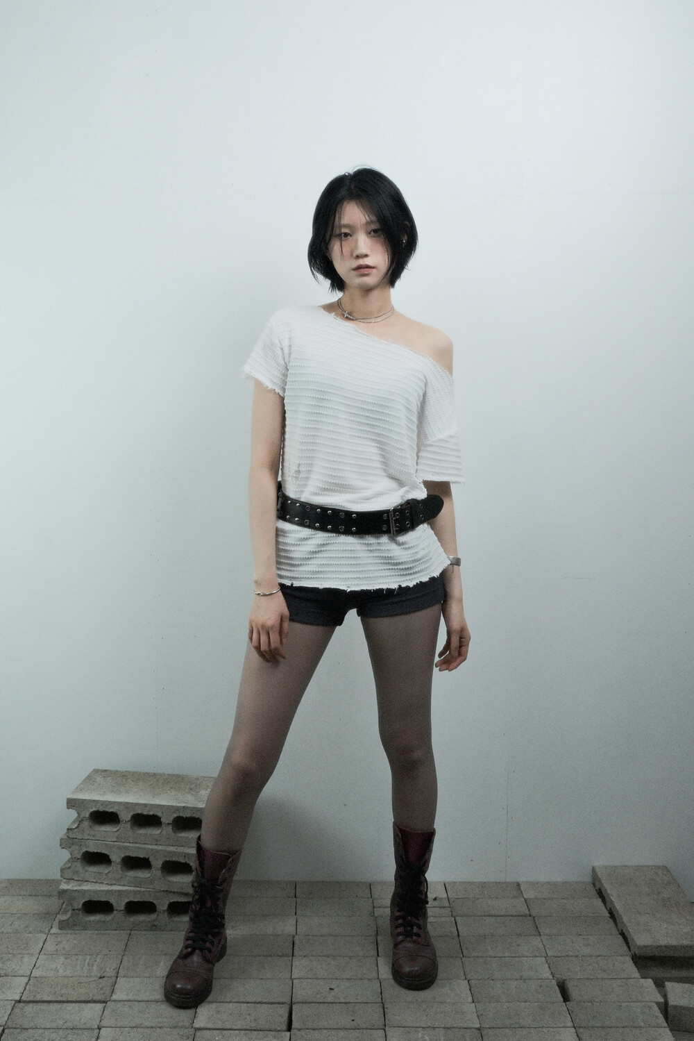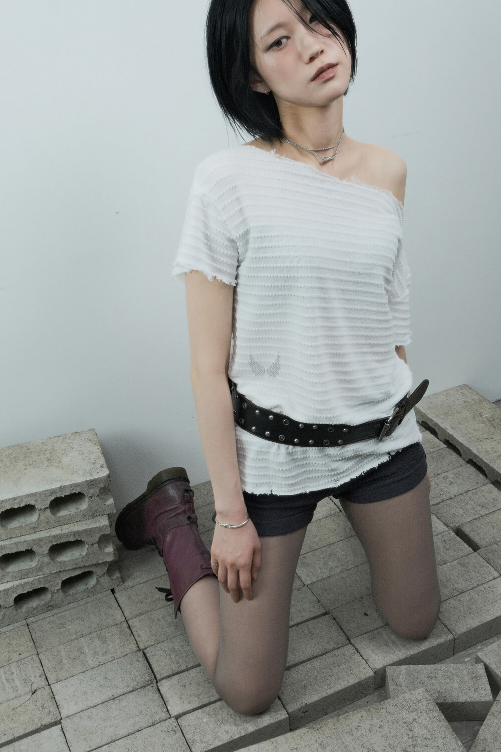 [RESTOCK]Texture loose Short Sleeve Knit White